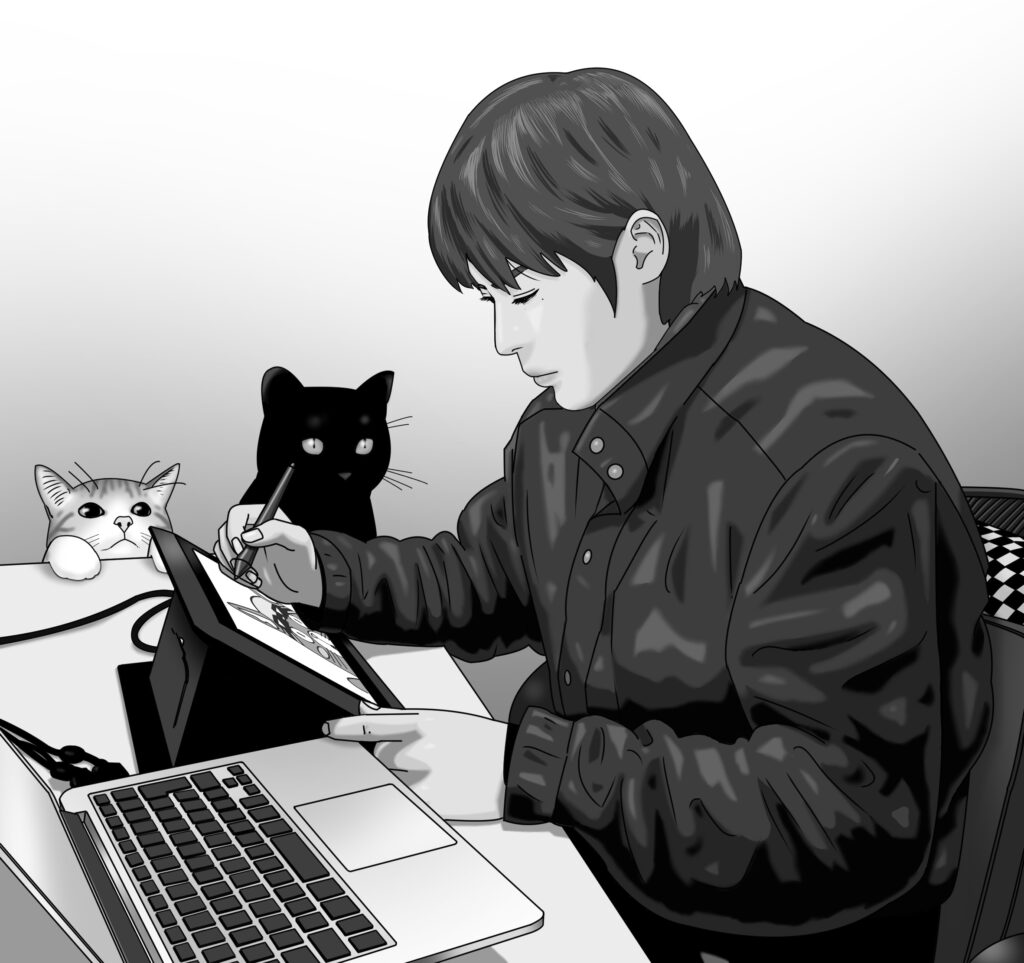 漫画だけでなく、絵本、イラスト、アニメ、動画制作、絵コンテ、WEBデザインなど、幅広いクリエイティブ活動を展開している。